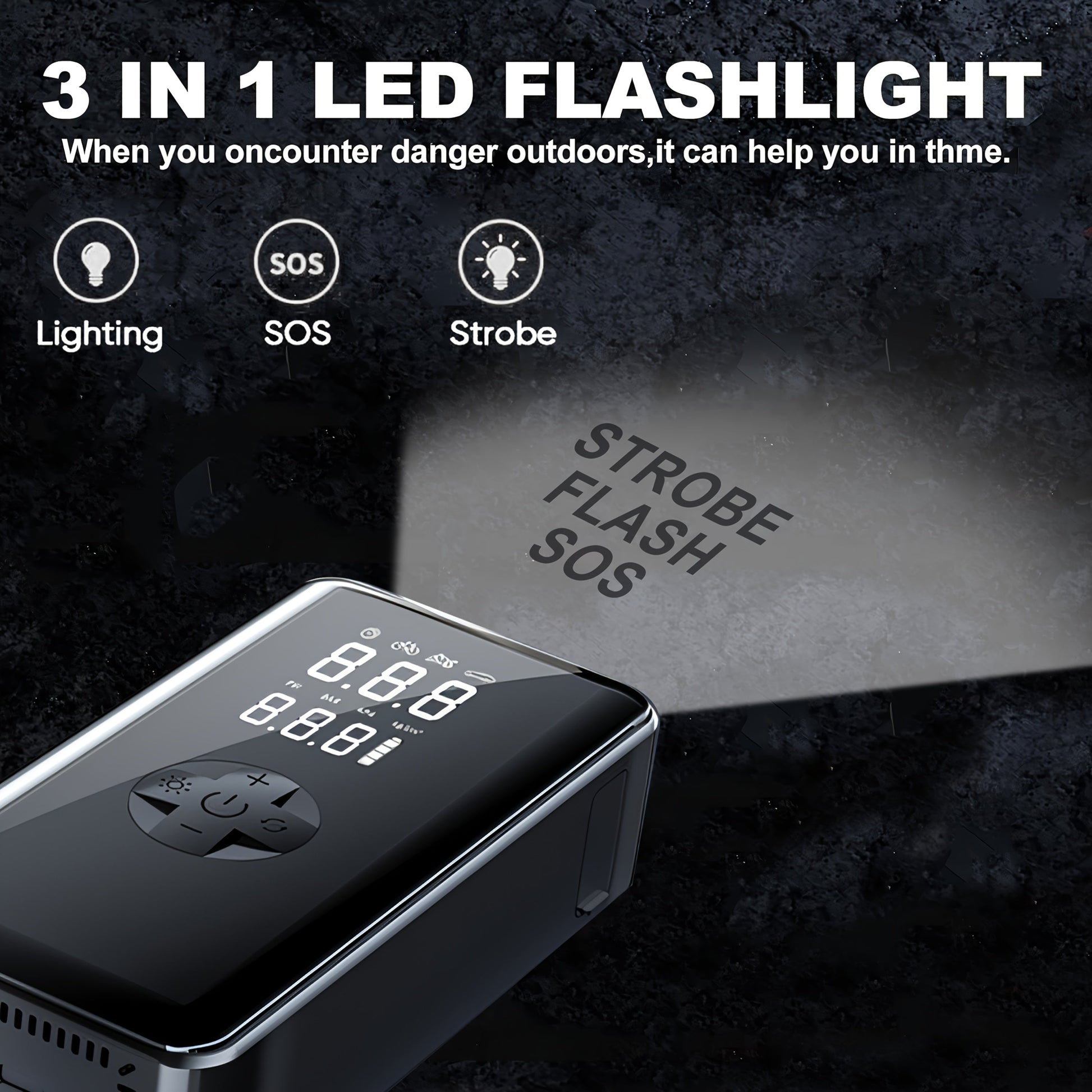 Built-in LED flashlight with 3 modes for emergency lighting.