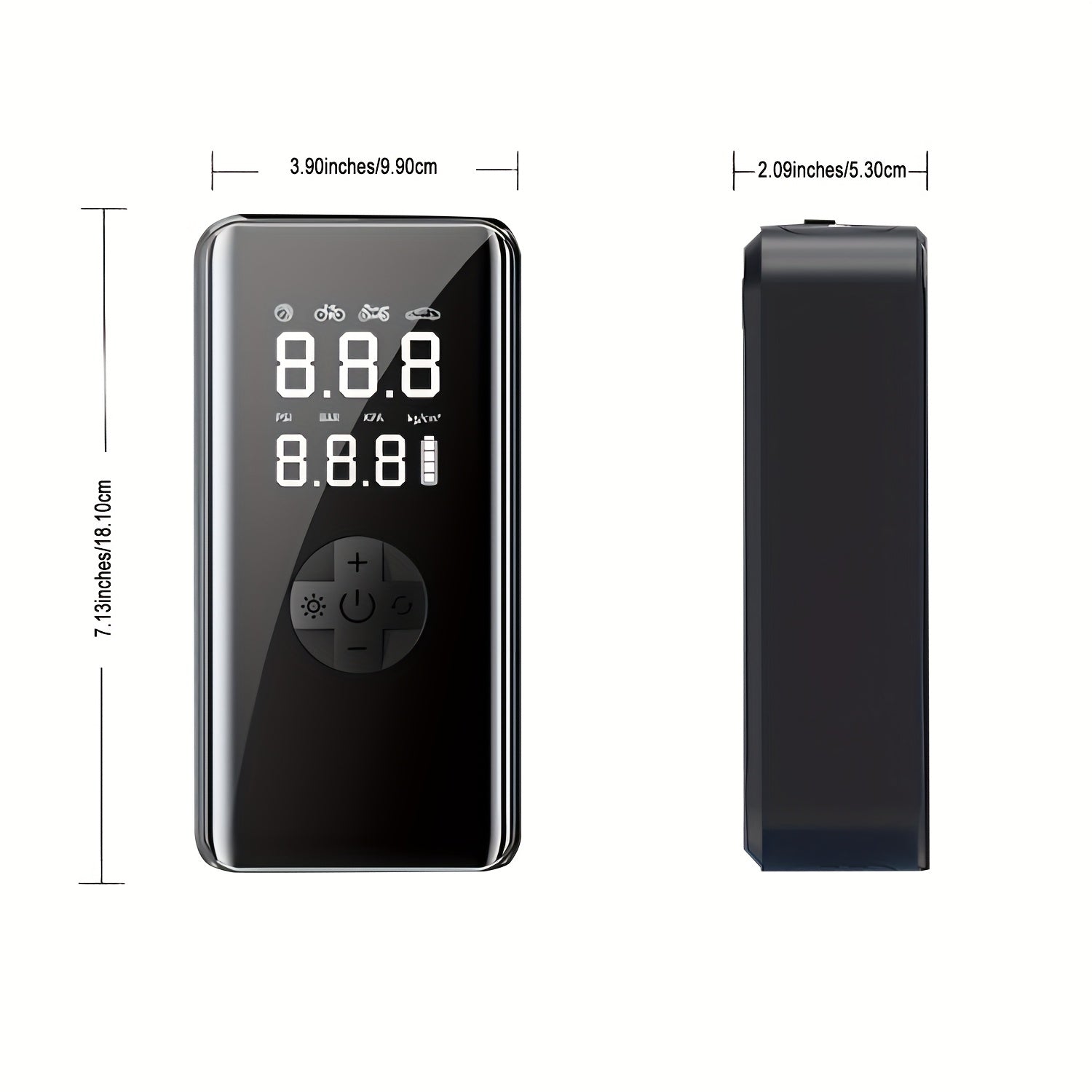 The 7-in-1 Car Battery Starter Kit is your all-in-one solution for roadside emergencies. It instantly jump-starts vehicles up to 5.0L Gasoline or 3.0L Diesel engines, ensuring you’re never stranded. Equipped with a 150 PSI air compressor, it can quickly inflate tires, bikes, or sports balls in just minutes. The LED flashlight offers three modes for emergency lighting, while the integrated power bank keeps your devices charged. Its compact design makes it easy to store in your vehicle, ensuring you’re always prepared. Refer to the image for exact dimensions. Stay powered and safe with the 7-in-1 Starter Kit!